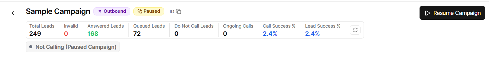 Chat logs β All chat conversations are logged and can be viewed in the campaign chat logs section, providing full visibility into visitor interactions.