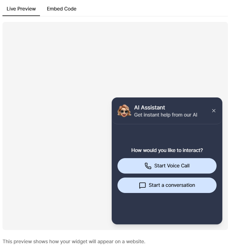 You can configure chat and voice simultaneously (both enabled), or choose either chat-only or voice-only modes. Visitors can chat with your AI agent directly on your website without voice calls.