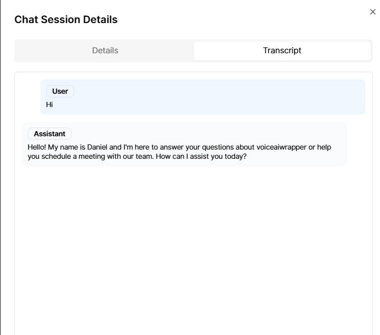 Note: This feature uses VAPI's session (chat) API. All chats are logged and billed according to your subscription plan. Ensure the VAPI assistant used for chat has