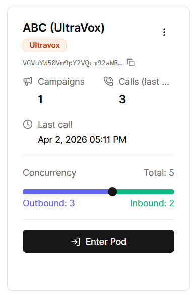 Go to Voice Providers, add your Ultravox API key, and use the webhook URL we provide. Ultravox sends call events to that endpoint — it needs to be set correctly for statuses, transcripts, and recordings to appear in the app.