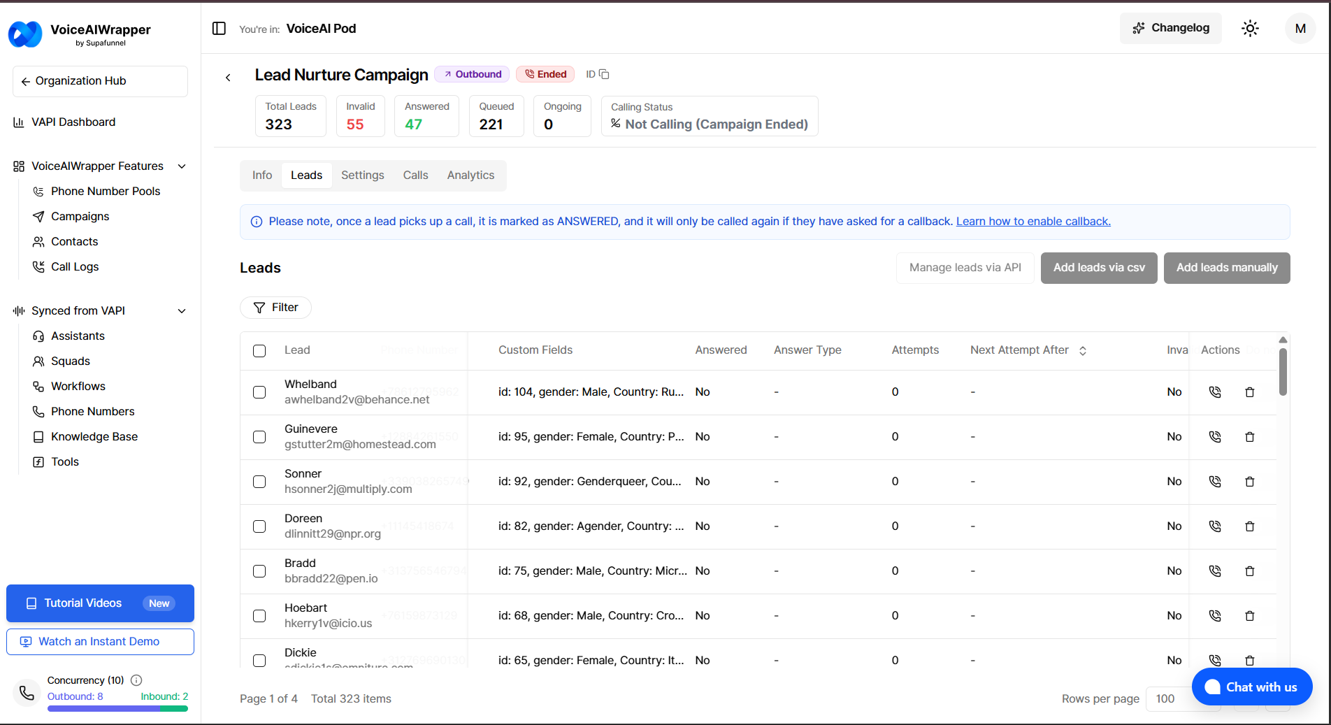• Answered Leads (Outbound)